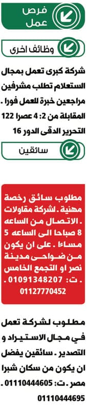 وظائف سائقين درجة ثانية اليوم الوسيط