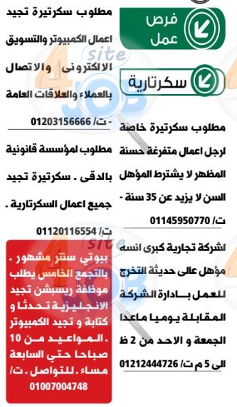 وظائف سكرتارية بالهرم الوسيط