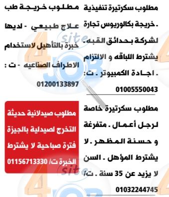 وظائف سكرتارية بالهرم الوسيط