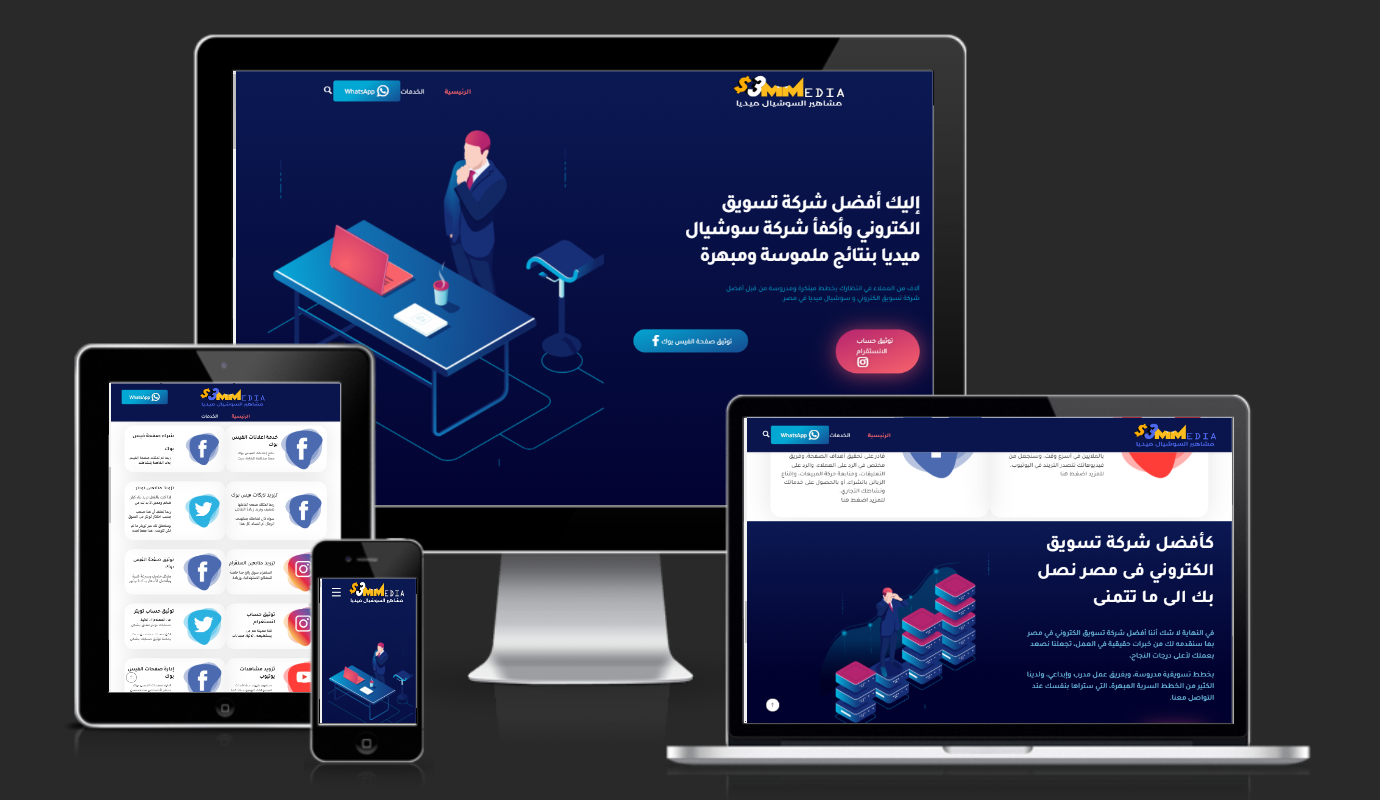 - خدمات تصميم المواقع الإلكترونية المتوافقة مع محركات البحث والأجهزة الرقمية الحديثة، أي بمقاسات مختلفة وأحجام عديدة.